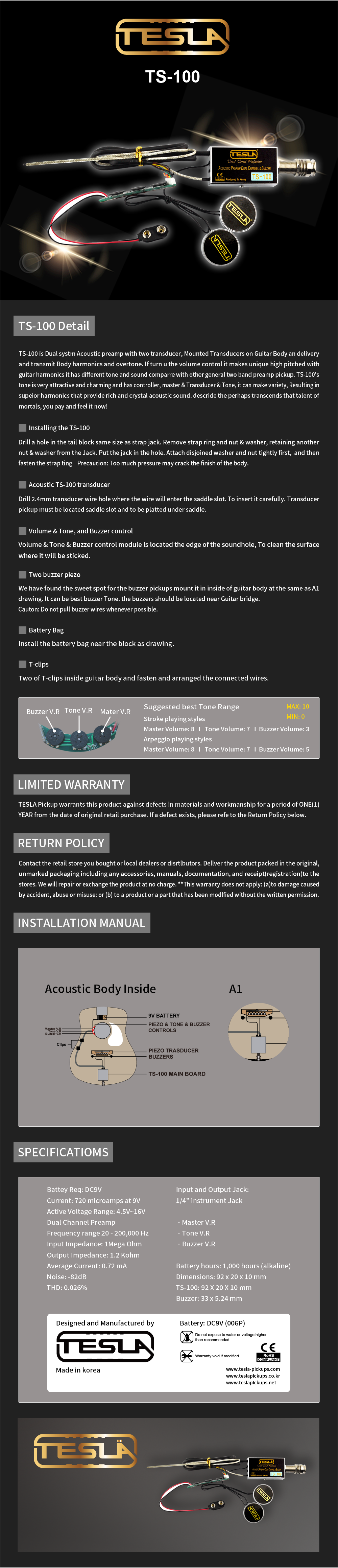 - TESLA ACOUSTIC PICKUP SINGLE & DUAL SYSTEM